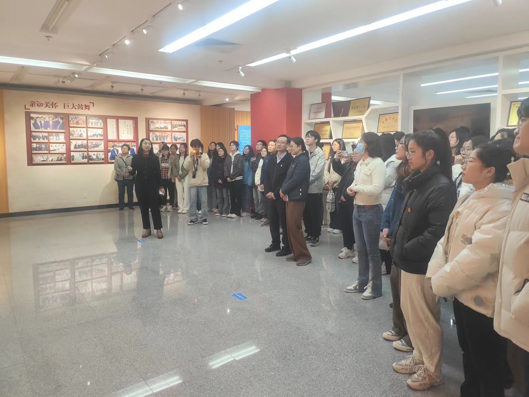 为深入学习贯彻习近平新时代中国特色社会主义思想和党的二十大精神,以学思践悟筑牢信仰之基,进一步提升党员党性修养,11月21日,欧冠官网中文版党委组织全体师生党员开展主题党日活动,参观贺惠邦先生手书毛泽东诗词楹联题词作品展、《没有共产党就没有新中国》百年馆藏报纸展以及欧冠官方网站办学75周年成就展。学院党委班子成员、组织员、各支部书记、全体师生党员参加此次活动。
