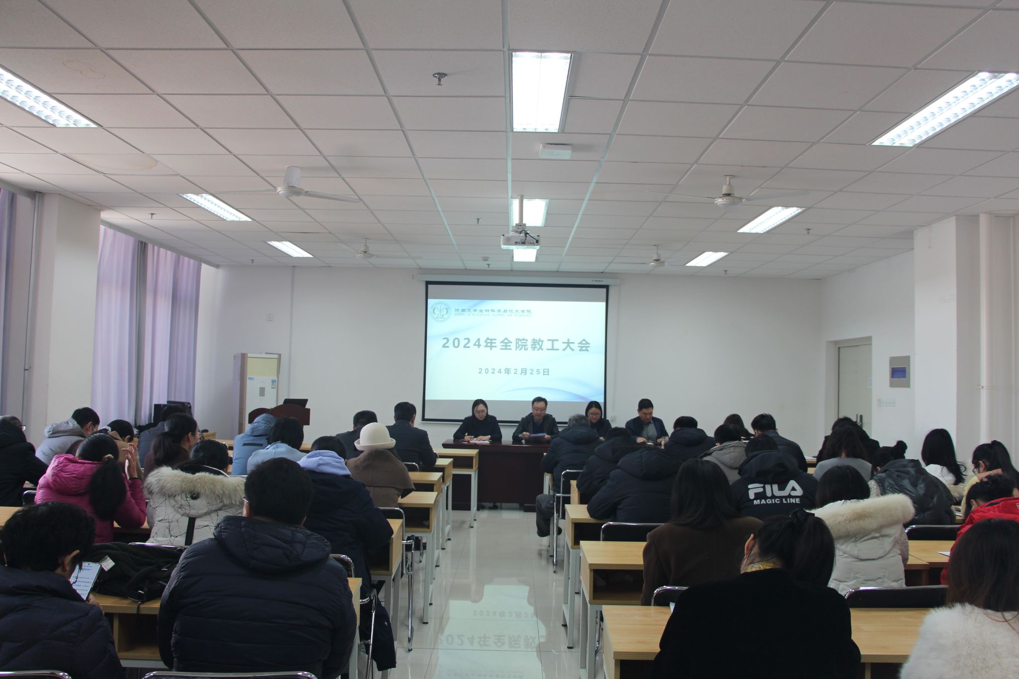 2月25日,欧冠官网中文版召开全体教职工大会,传达学习学校四届四次全委会扩大会议精神,部署安排新学期各项工作。学院领导班子成员、全体教职工参加会议。会议由学院党委书记史国普主持。