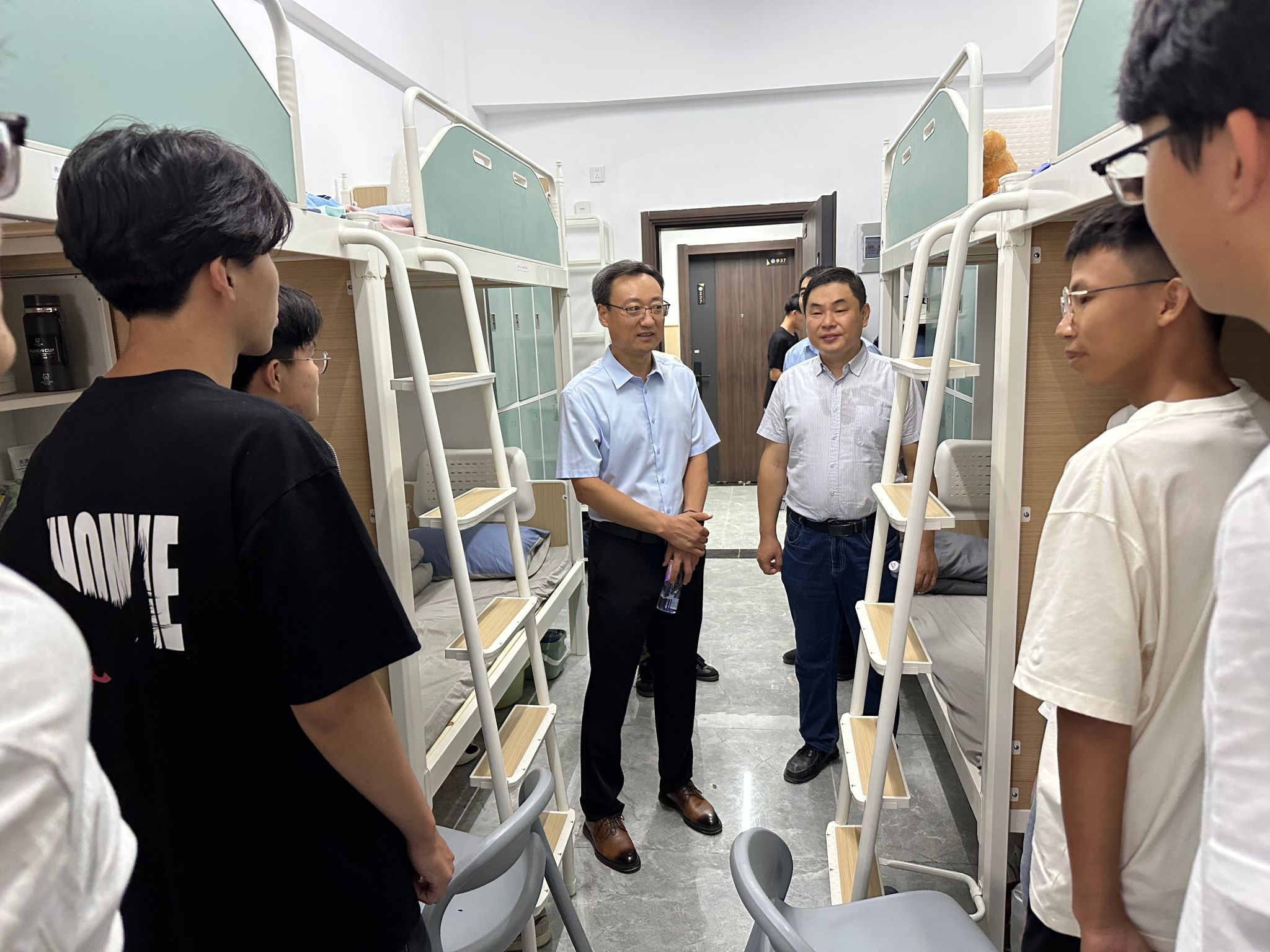 下午,学院领导班子、全体辅导员先后来到新生学生公寓,与新生亲切交流,细致了解学生的生活适应情况。在送去关怀的同时,叮嘱新生增强安全防范意识,尽快适应大学生活,融入大学集体。一声声叮咛、一句句问候,表达了学院对新生的殷切关怀与温暖期许,让初入济大校园的同学们感受到“家”的温馨。